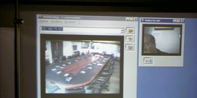Il Corpo Emergenza Radioamatori ha effettuato un collegamento audiovisivo via satellite tra il Paladozza di Bologna e il campo base della protezione civile dell'Emilia Romagna a Villa Sant'Angelo in Abruzzo.