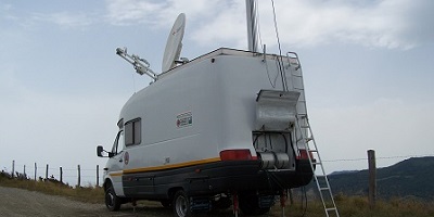 Prove tecniche dell'Associazione CER a Monterenzio (BO) per verificare le procedure di collegamento satellitare in banda Ku.